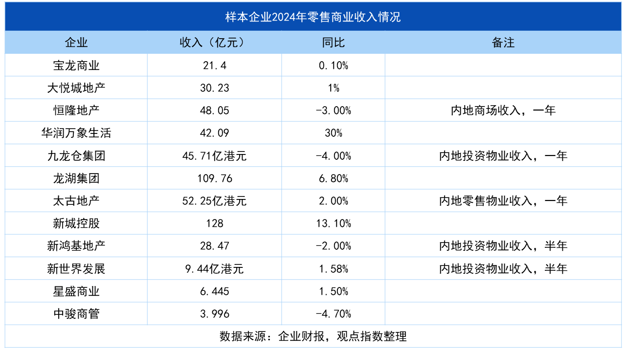 港資方面,在高端消費趨弱之下,以運營高端商業(yè)為主的港資企業(yè)代表也進入了瓶頸期,但在多年積累的優(yōu)質(zhì)資產(chǎn)組合、強勁運營能力之下,基本盤較穩(wěn)。