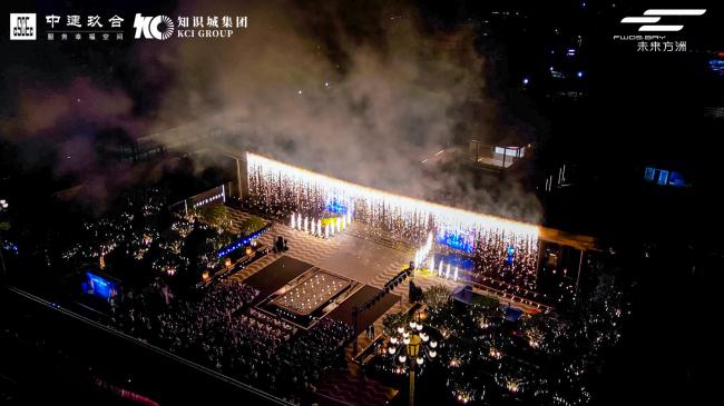 實景大門開放當日,中建玖合還舉辦了一場開放儀式。當煙花表演在夜空中盛大綻放,這座宏偉氣派的“廣州門”在光彩映照間,等待業(yè)主歸家。