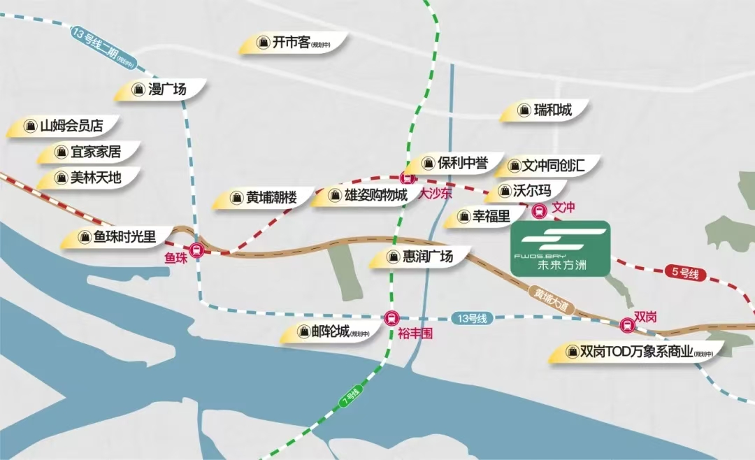 交通方面,未來方洲擁有5號線與13號線雙地鐵上蓋,手握廣州含金量極高的兩條地鐵線,一線直達珠江新城、金融城等核心商務區(qū),共享珠金琶CBD黃金生活圈。