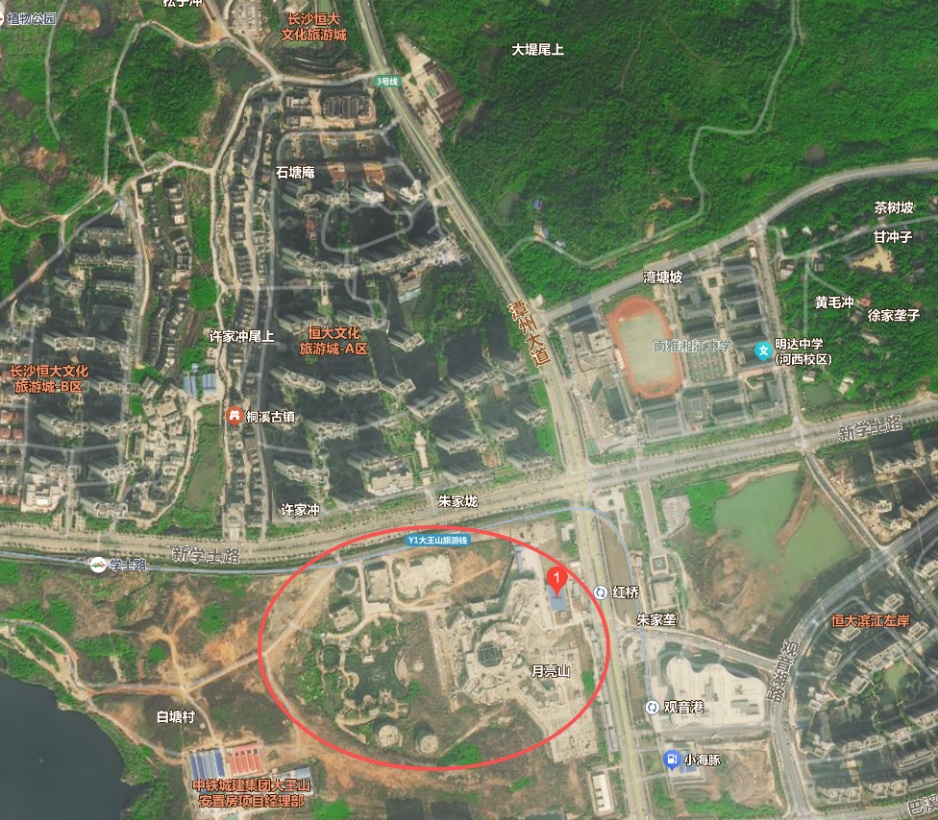 根據(jù)交易公告,拍賣標(biāo)的為“長(zhǎng)沙恒大童世界旅游開(kāi)發(fā)有限公司名下三宗娛樂(lè)康體用地及地上在建工程、附著物”,三幅地塊總面積約17.2萬(wàn)平方米,土地性質(zhì)為娛樂(lè)康體用地,土地使用期限至2056年12月6日屆滿。