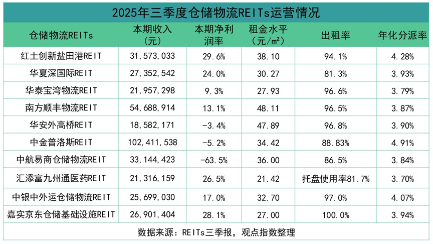 從運營指標看,倉儲物流REITs展現(xiàn)出較強的市場適應能力。截至2025年三季度,其底層資產平均出租率達92%,明顯高于國內倉儲物業(yè)85%的平均水平,部分核心城市的高標倉項目更是實現(xiàn)100%滿租,反映出優(yōu)質倉儲資產受到市場的認可。
