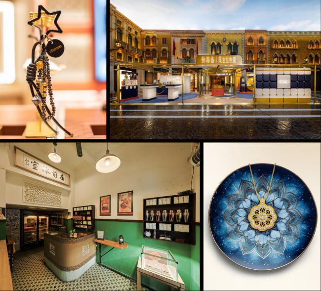 過去一年,周生生與潮流品牌Randomevent在成都打造了“幸運唱片行”快閃店,實現(xiàn)珠寶到潮流文化的大膽跨界;在澳門與威尼斯人合作,發(fā)掘黃金Charme作為配飾的更多可能;也與餐飲(如香港六公館、香港朗廷酒店、廣州廟前冰室)合作推出主題套餐,將珠寶美學融入生活場景。