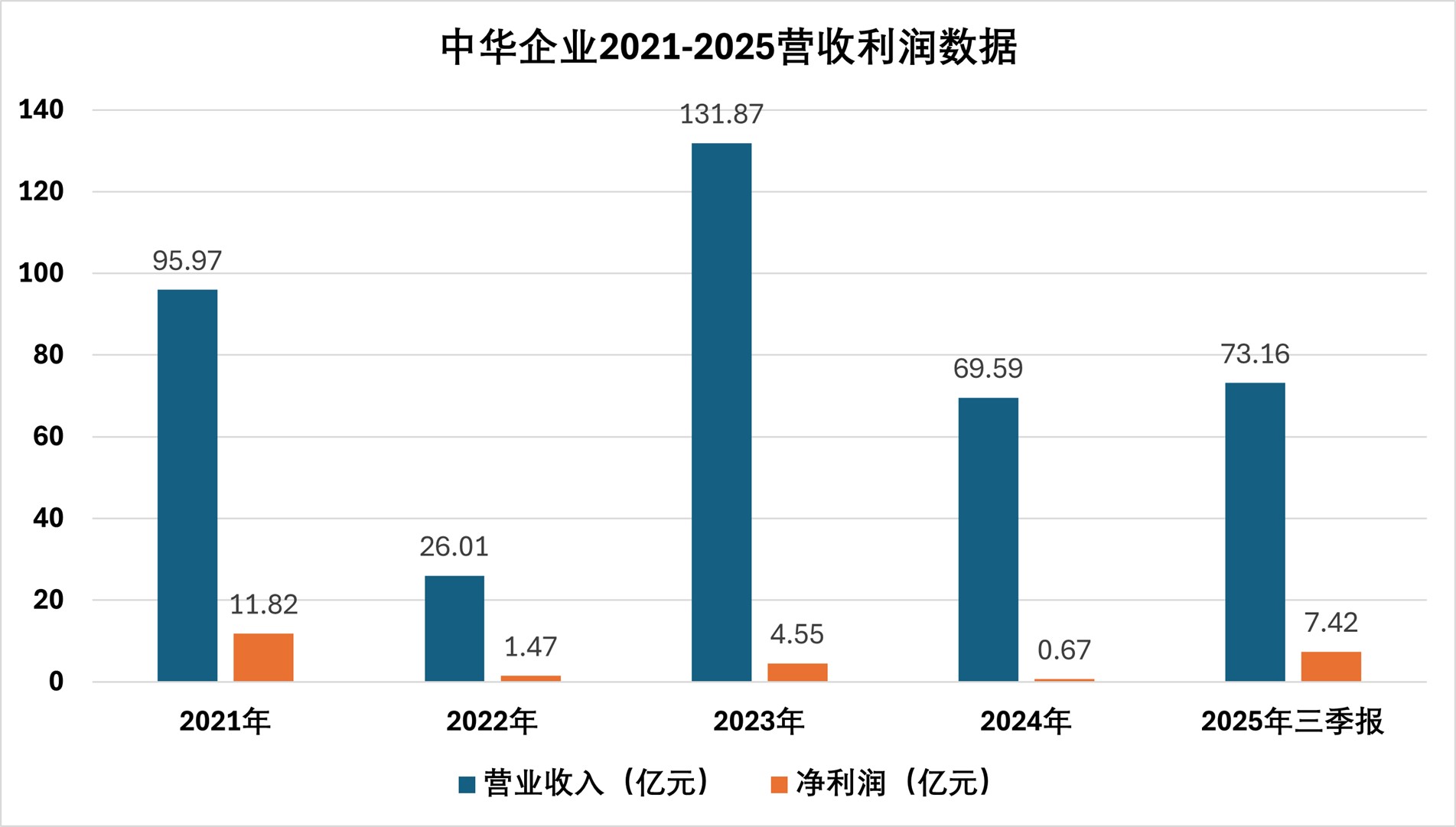 于2022-2024年,中華企業(yè)營(yíng)收從25.59億元升至131.87億元,后又降至69.59億元;歸母凈利潤(rùn)也在不斷起伏:2022年盈利0.23億元、2023年盈利5.55億元,2024年虧損3.17億元。