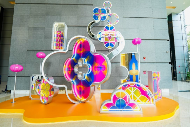 圖注:廣州天河城「粵見(jiàn)嶺南新春游園」主題美陳–中庭西側(cè)主裝置