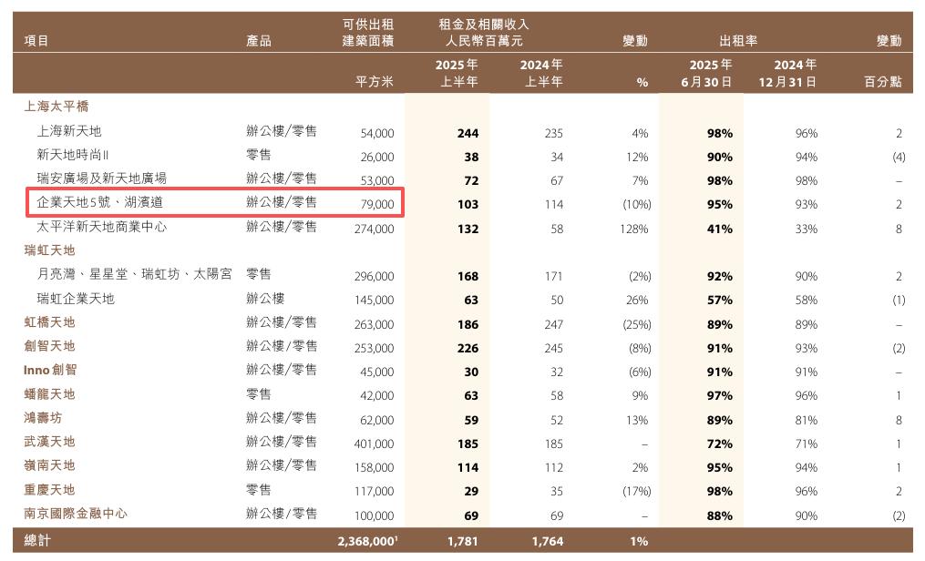 據(jù)瑞安房地產(chǎn)財報顯示,疑似涉及此次交易的企業(yè)天地5號、湖濱道2024年全年租金收入約2.34億元,出租率錄得93%。而在2025年上半年,該項目租金收入為1.03億元,出租率提升至95%高位。