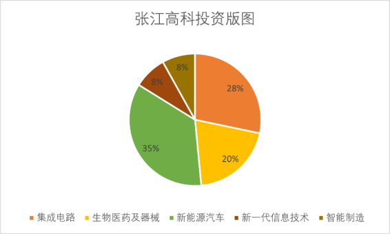 其中,集成電路占28%、生物醫(yī)藥及器械占20%、新能源汽車占35%、 新一代信息技術(shù)占8%、智能制造占8%。