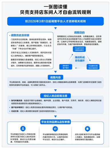 作為平臺方,貝殼也旗幟鮮明地反對惡意挖角等過度競爭、內(nèi)卷式競爭行為,維護(hù)公平、透明、互信的合作環(huán)境。為此,貝殼將持續(xù)為合作伙伴提供覆蓋面更廣、更體系化的專業(yè)培訓(xùn)與能力支持,助力合作伙伴以科學(xué)管理實現(xiàn)‘專業(yè)留人、服務(wù)留人、機(jī)制留人’,不斷提升門店的核心競爭力。