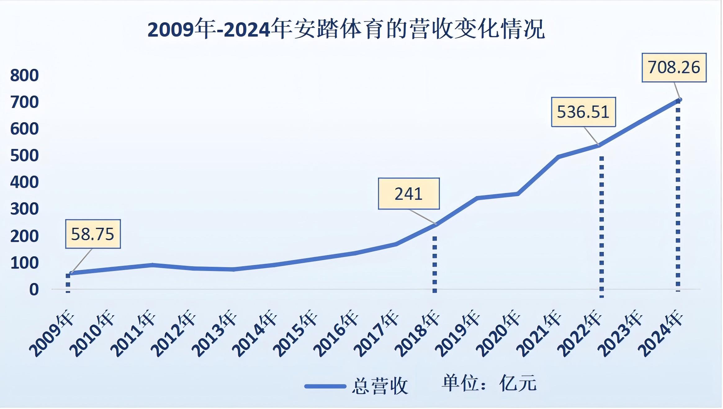 安踏收購FLIA那一年,集團總營收58.75億元,到了2024年末,全年營收已增長至708.26億元,規(guī)模整整翻了11倍。