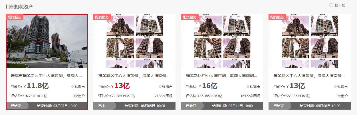 2025-2026年,珠海多宗商辦、綜合體項(xiàng)目進(jìn)入法拍市場,普遍呈現(xiàn)高評估、低起拍、多次流拍特征。