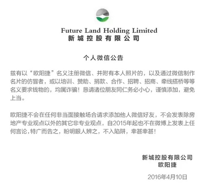 一位高管同事說起,他曾接到總裁微信,說是因為開會不方便,請他幫助把一筆錢轉匯給指定帳號,并把匯款記錄拍照發(fā)給了他,卻因為一句話漏了馬腳:“我在干什么還要你來問嗎?”這個騙子不知道新城控股的“誠實做人,踏實做事”的企業(yè)文化,他以為總裁都是居高臨下、頤指氣使的,卻不知道新城控股的高管都是極有涵養(yǎng)的。