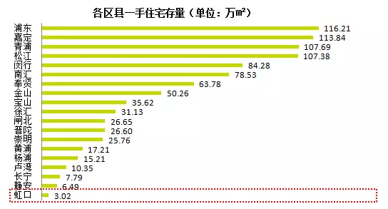 由于土地資源稀缺,近年來虹口區(qū)新房市場供求均處于低位,可以說是面臨無房可賣的窘境。據(jù)上海鏈家市場研究部數(shù)據(jù)顯示:目前上海全市一手住宅存量為928.52萬方,處于相對低位水平。而各區(qū)縣一手住宅存量表中,虹口區(qū)存量最低,僅為3.02萬方。
