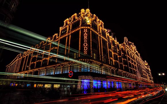 圖為哈羅德百貨和金絲雀碼頭金融城的夜景