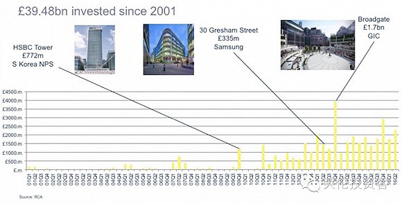 北美兩國對英國地產(chǎn)的投資策略非常不同,以養(yǎng)老基金為代表的加拿大投資者傾向于投資并長期持有英國資產(chǎn),而以黑石為代表的美國投資者擅長機會型投資,快進快出迅速獲益。北美投資者從2001年開始至今已經(jīng)在英國投入了超過998.5億英鎊,是三個地區(qū)里對英國投資最多的區(qū)域。
