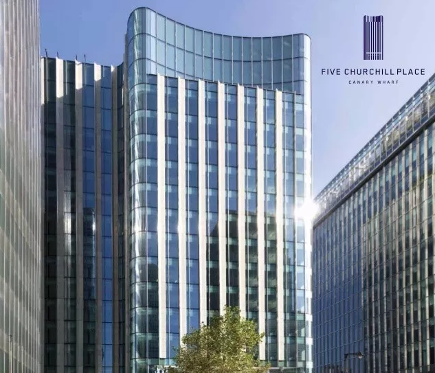 5 Churchill Place大樓總面積31.9萬平方英尺(約為2.96萬平方米),共12層,此前為美國投行Bear Stearns的倫敦總部大樓,摩根大通收購Bear Stearns后接下了這棟大樓其中10層的租約,租約到2029年8月。