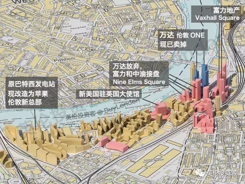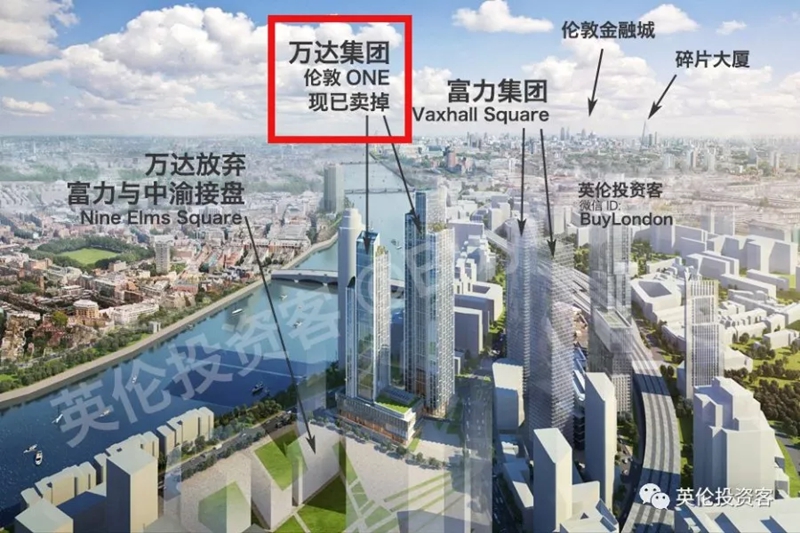 2017年 8月21日,萬(wàn)達(dá)放棄以4.7億英鎊在倫敦收購(gòu)?fù)恋氐慕灰祝袾ine Elms Square的產(chǎn)權(quán)順利移交給了兩家在香港上市、在境外擁有充足資金儲(chǔ)備的中資開(kāi)發(fā)商廣州富力地產(chǎn)、重慶中渝置地。