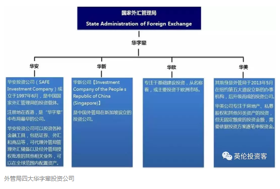 中國外匯管理局管理著大量的外匯儲備,目前擁有華安、華新、華歐 、華美一共4家負責中國外匯儲備的投資和管理的駐外機構(gòu)。