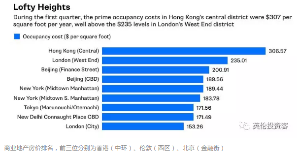 數(shù)據(jù)顯示,按均價(jià)來(lái)算,香港是世界上商業(yè)地產(chǎn)最貴的地方,倫敦和北京緊隨其后。
