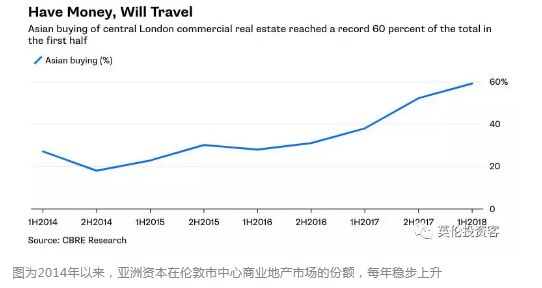 彭博數(shù)據(jù)顯示,2018年以來(lái)倫敦共有價(jià)值72.3億英鎊的寫(xiě)字樓經(jīng)歷了換手,其中60%的項(xiàng)目被亞洲買(mǎi)家拿下。