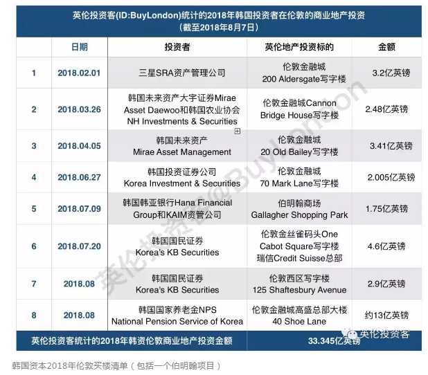 包括文中提到的代表性大交易:韓國(guó)國(guó)家養(yǎng)老基金NPS擊敗香港長(zhǎng)江實(shí)業(yè),收購(gòu)倫敦高盛大樓的巨額投資,剛剛于上周(2018年8月22日)正式交換合同,最終成交價(jià)為11.6億英鎊,是今年倫敦房地產(chǎn)市場(chǎng)達(dá)成的最大交易。
