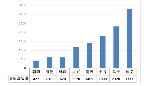 圖2 北京市各區(qū)共有產(chǎn)權(quán)項目房源統(tǒng)計