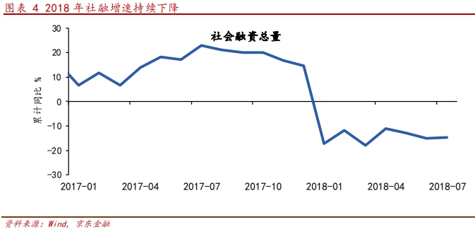 ·社會融資增速不及預期。今年以來,社會融資總量增速持續(xù)下滑。這一方面與前期去杠桿政策相關,另一方面與實體經(jīng)濟下滑,項目資源受限,融資需求降低有關。特別是7月貨幣政策已經(jīng)邊際放松,信貸數(shù)據(jù)回升,但仍不改社融回落,便可見實體經(jīng)濟需求整體偏緊。