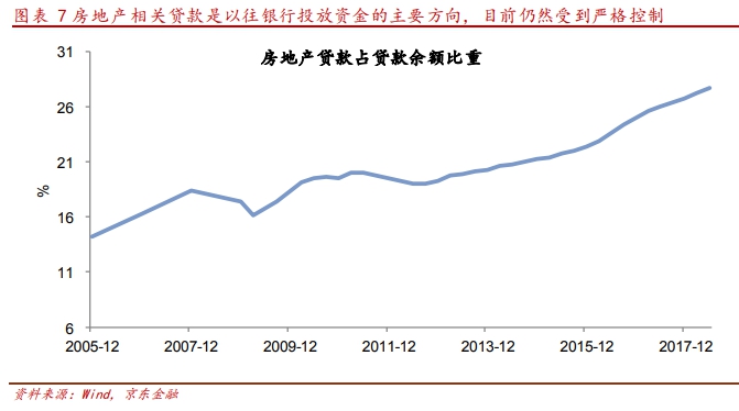 從以往情況來看,房地產(chǎn)與地方融資平臺是銀行貸款的重要流向。房地產(chǎn)方面,源于房價螺旋式攀升帶動房地產(chǎn)相關貸款可承受的資金成本要高于一般實體投資,且有充分的抵押品,故而一直是銀行貸款的重要流向。同時地方融資平臺、國有企業(yè)貸款也相對容易,主要與其享有隱形擔保有關,往往呈現(xiàn)出預算軟約束的特征。