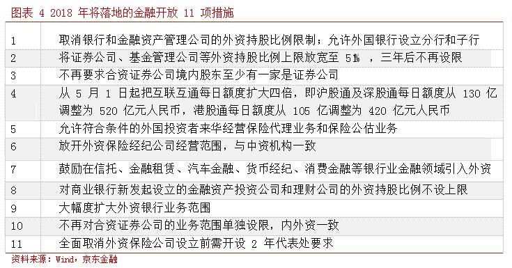 6月8日,銀保監(jiān)會(huì)表示取消外資入股中資銀行和金融資產(chǎn)管理公司的持股比例限制,是個(gè)積極驗(yàn)證。而早在4月的博鰲論壇上,央行行長(zhǎng)還曾就證券公司、基金管理公司等外資持股比例上限放寬至51%,完善內(nèi)地與香港兩地股票市場(chǎng)互聯(lián)互通機(jī)制,將互聯(lián)互通每日額度擴(kuò)大4倍至520億元人民幣等做出明確表態(tài)。并承諾爭(zhēng)取于2018年內(nèi)開(kāi)通“滬倫通”。