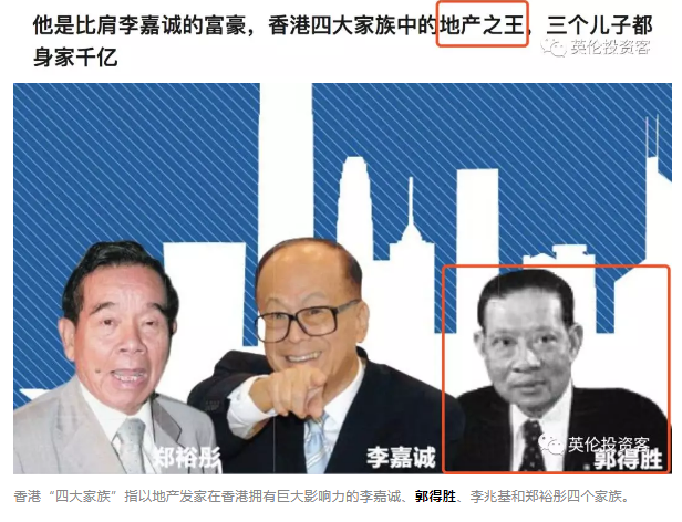 郭氏家族大家長是新鴻基創(chuàng)始人郭得勝,郭得勝也是“香港四大家族”里唯一一個真正白手起家的人。