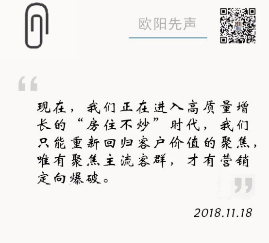 現(xiàn)在,我們正在進入高質(zhì)量增長的“房住不炒”時代,我們只能重新回歸客戶價值的聚焦,唯有聚焦主流客群,才有營銷定向爆破。