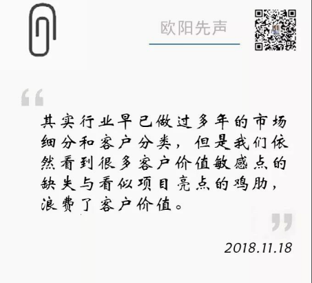其實行業(yè)早已做過多年的市場細分和客戶分類,但是我們依然看到很多客戶價值敏感點的缺失與看似項目亮點的雞肋,浪費了客戶價值。