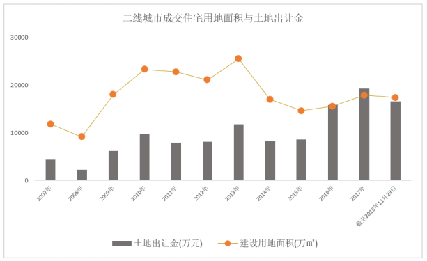 今年以來,二線城市賣地不少,成交住宅用地面積比去年同期增長25.3%,已經接近去年全年水平,并且已經收入了歷史第二高峰的土地出讓金。