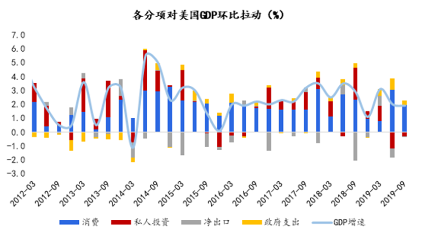 筆者認(rèn)為,雖然美國經(jīng)濟短期內(nèi)尚未看到衰退風(fēng)險,主要外部風(fēng)險中美摩擦和英國脫歐近期情形均現(xiàn)轉(zhuǎn)機,但美國經(jīng)濟放緩的趨勢遠(yuǎn)未結(jié)束??傮w來看,當(dāng)前全球經(jīng)濟仍呈現(xiàn)加速放緩的態(tài)勢;且中美貿(mào)易談判雖然有階段性進(jìn)展,但未來不確定性仍然存在,美國出口的反彈很可能只是暫時性的;英國脫歐等因素也將影響全球經(jīng)濟前景。美聯(lián)儲年內(nèi)第三次降息已經(jīng)靴子落地,可以在一定程度上提振市場信心,但未來內(nèi)外不確定因素影響下,美國經(jīng)濟下行壓力仍存。
