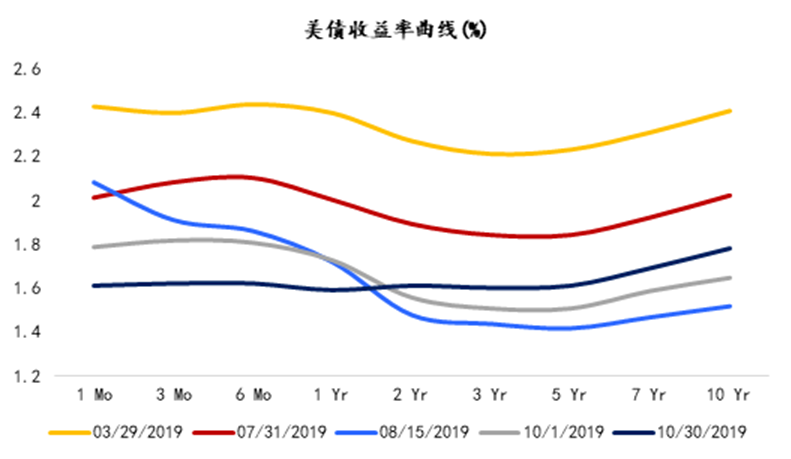 同時,在發(fā)布會上,鮑威爾也多次提及美國消費的強勁,不擔(dān)心制造業(yè)、私人投資和出口的疲軟會迅速影響到消費。宣布降息后,美國國債收益率曲線進(jìn)一步陡峭,國債利率已經(jīng)基本結(jié)束倒掛,美國經(jīng)濟的近憂也有所緩解。