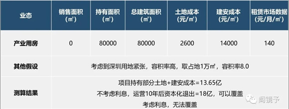 對于實體企業(yè),邏輯類似,無非自持部分自用為主,沒有招商壓力,其他可售部分算賬類似。