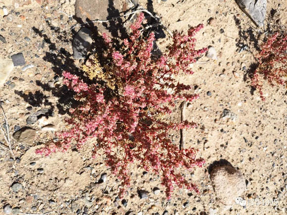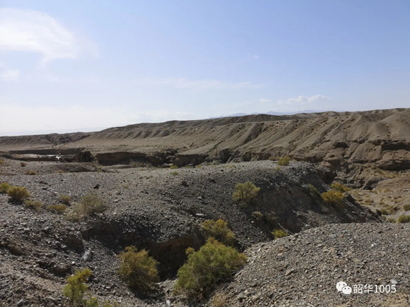 大漠孤煙直,長河落日圓;勸君更盡一杯酒,西出陽關(guān)無故人!古詩人既描繪了大漠的雄渾與壯闊,也描寫了大漠的蒼茫和寂廖!行走在戈壁猶如進(jìn)入無人的原野,不要說人,就是動物也行蹤罕跡。一眼望去,連綿起伏的山丘與天相連,除了黃色還是黃色,藍(lán)天也顯得暗淡許多,沒有一絲綠意,滿目蒼涼。地面布滿了粗砂、礫石,雖然隔著厚實的鞋底,但踩上腳板底還是隱隱作痛。一條條干涸的河溝橫七豎八地橫亙其中,麻黃草、駱駝刺、紅柳、沙拐棗,一棵、二棵零零星星地點綴著這無邊無際的戈壁,多多少少帶來了些許的生氣,尤顯彌足珍貴!只有置身其中才讓人真正領(lǐng)會“窮荒絕漠鳥飛盡,萬磧千山夢猶懶”!
