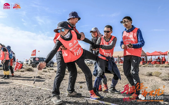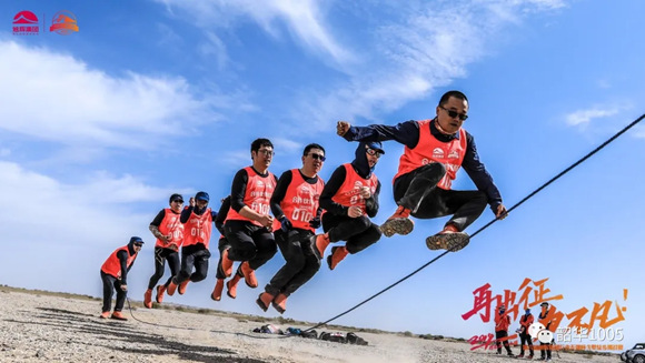 這是一堂生動而富有實效的團(tuán)建課程! 要想快,一個人走,要想遠(yuǎn),一群人一起走。一個人沒受任何約束和干擾,可以更專注,可以走的更快。但戈壁徒步是一場持久的團(tuán)體賽,不主張一個人、一天的瞬間爆發(fā),而提倡耐心與堅忍,目標(biāo)清晰,不放棄、不拋棄,相互幫助、相互鼓勵,協(xié)助團(tuán)結(jié)如一人,平安順利抵達(dá)終點。“戈6”賽程規(guī)則明確規(guī)定:不允許奔跑,不允許單獨行走,保持緊密隊形,不允許突前或落單,前后距離控制在50米內(nèi),團(tuán)隊每天攜手沖線;每退賽一名隊員,每天扣除團(tuán)隊成績300分,并取消最高榮譽(yù)--沙克爾頓獎。團(tuán)隊跳繩、負(fù)重前行、擔(dān)架前行、投壺等團(tuán)隊任務(wù)也非常考驗團(tuán)隊的統(tǒng)一執(zhí)行力……。戈壁的魅力不在于超越自己,更重要的是鑄煉團(tuán)隊,生動而富有實效。
