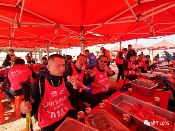 這是一項完美無暇的策劃與執(zhí)行!作為策劃者,不怕你做不到,就怕你想不到。在荒無人煙的戈壁,天時和地利都存在諸多不確定性,更何況近千人的龐大隊伍,完美實屬可遇不可求!但旭輝和毅行做到了,賽前宣傳預(yù)熱、“戈友”接送、吃宿安排,賽道統(tǒng)籌、賽程安排、安全保障、醫(yī)療救護(hù)、后勤補(bǔ)給,以及國慶升旗儀式,還有細(xì)如賽中補(bǔ)水提示、健康監(jiān)測、賽后體能恢復(fù)等等,旭輝和毅行都用心盡力,張馳有度,匠心獨具,可謂極致!