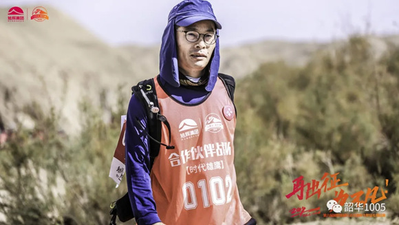 張毅:旗手,來自廣州,有多年多次馬拉松和越野、戈壁徒步的經(jīng)驗,速度、耐力無得頂,第一天一直遠(yuǎn)遠(yuǎn)拋離隊伍,以至教練不停的喊:張總,慢點!之后三天一直居中關(guān)照著每一位隊友。作為旗手,不管處于何等惡劣環(huán)境,4天來總是人在旗在,隊旗始終高高飄揚,成為33支參賽隊的一道亮麗風(fēng)景線,榮獲“風(fēng)尚獎”實至名歸?;蛟S是過于自信,居然只帶跑鞋,以至腳后跟起了“水泡”,算是教訓(xùn)了。
