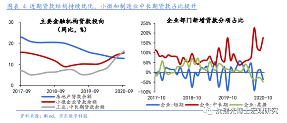 四是金融監(jiān)管趨嚴(yán)、不斷強(qiáng)化實(shí)體導(dǎo)向。疫情爆發(fā)后政策面對小微企業(yè)的信貸支持力度顯著加大,但部分實(shí)體貸款違規(guī)變換資金用途,以多種形式直接或間接(結(jié)構(gòu)性存款、理財(cái)產(chǎn)品等)投向房地產(chǎn);違規(guī)信貸作為首付進(jìn)一步撬動(dòng)按揭,6-9月全國新增居民中長期貸款均在6000億左右,深圳、寧波等熱點(diǎn)城市房價(jià)上漲迅速。在此情況下,監(jiān)管迅速出臺“三道紅線”規(guī)則并窗口指導(dǎo)部分金融機(jī)構(gòu)收緊房貸額度,旨在遏制金融亂象、降溫房市、減少房地產(chǎn)擠占實(shí)體金融資源。其他監(jiān)管動(dòng)作也具有一定指示意義,例如,近期央行、銀保監(jiān)會聯(lián)合發(fā)布《網(wǎng)絡(luò)小額貸款業(yè)務(wù)管理暫行辦法(征求意見稿)》,銀行與互聯(lián)網(wǎng)公司合作的聯(lián)合貸款業(yè)務(wù)未來面臨全面壓降,同樣值得關(guān)注。