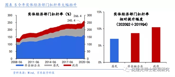 三是應(yīng)高度關(guān)注金融系統(tǒng)脆弱性。今年實(shí)體經(jīng)濟(jì)部門杠桿率大幅抬升,截至6月底達(dá)到266.4%、較去年末大幅上升21個(gè)百分點(diǎn);從相對變動(dòng)來看,政府和企業(yè)部門杠桿抬升的相對速度較快,擴(kuò)張型財(cái)政貨幣政策在穩(wěn)增長的同時(shí),不可避免地加劇了金融體系的脆弱性;近期AAA級央企債券集體違約暴雷、引發(fā)信用債危機(jī),已說明當(dāng)前市場信心不足。