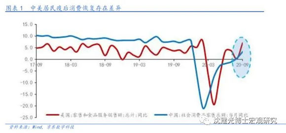 疫情之下,中美兩國應(yīng)對疫情的財政刺激有所差別,導(dǎo)致兩國居民消費在恢復(fù)節(jié)奏上存在差異。
