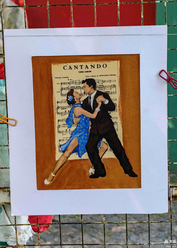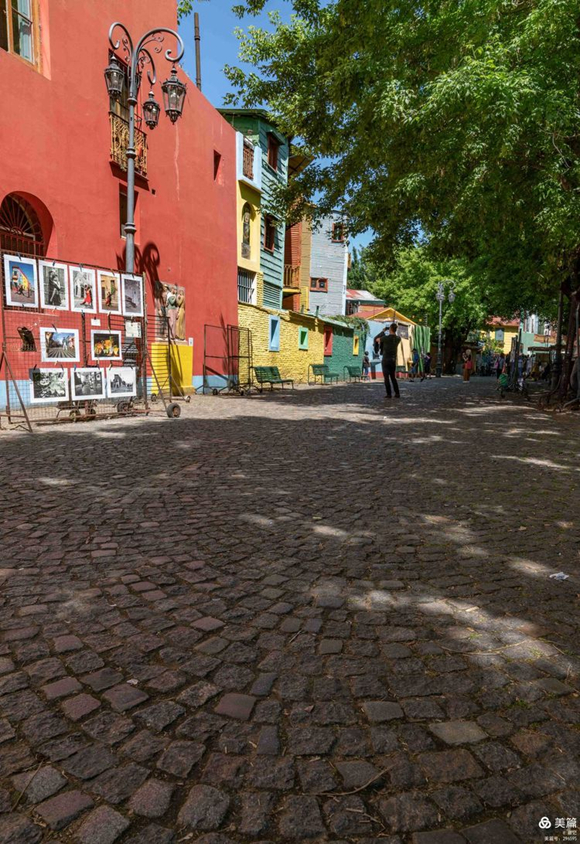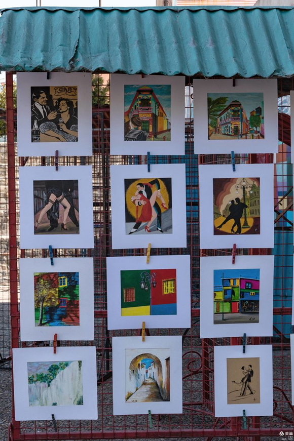 在卡米尼多小道,彩色墻壁下隨處擺放著售賣圖片的架子,多是探戈各式舞姿的圖片。