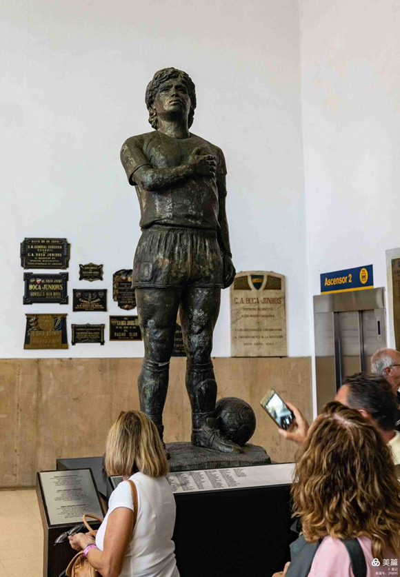 馬拉多納的雕像矗立在球場內(nèi)的足球博物館里。人們不無敬意地仰望著這位曾經(jīng)以“上帝之手”進(jìn)球的傳奇球星。