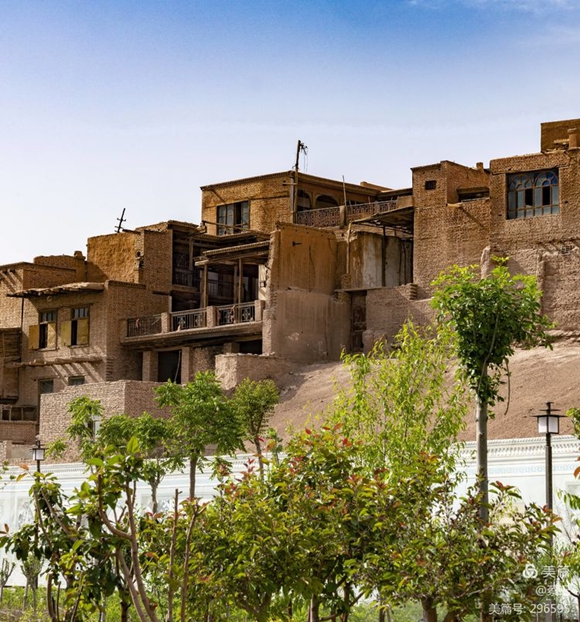 喀什干旱炎熱風(fēng)沙大,傳統(tǒng)民居是厚土墻平頂屋,后來(lái)也有磚房。