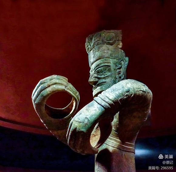 青銅器之謎:凌厲威嚴的立人像、人頭像及面具源自何處?立人像夸張的雙手抱持何物?抑或是作法的手勢?