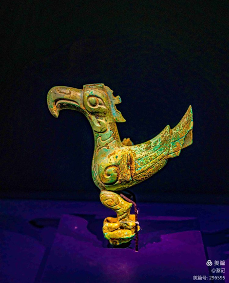 青銅鳥造型奇特,風(fēng)格怪異,紋飾工細精妙。