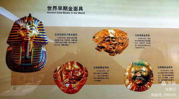 黃金面具在埃及和希臘多有發(fā)現(xiàn),著名的有古埃及圖坦卡蒙金面具(公元前14世紀)與古希臘邁錫尼金面具(公元前16世紀)。