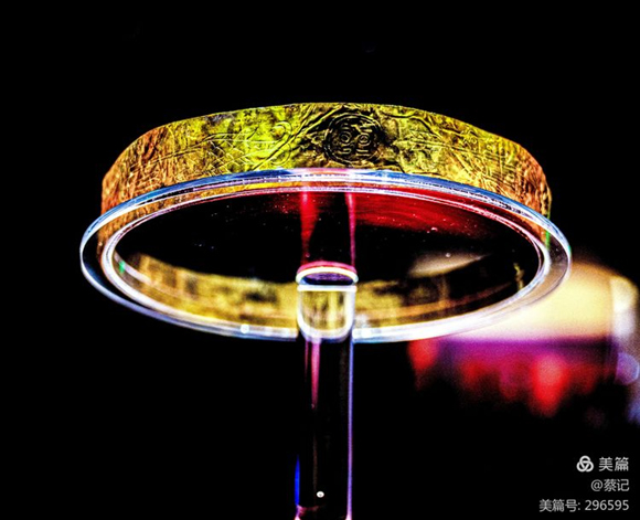 金飾直徑12.5厘米,器身極薄僅0.02厘米,重20克,含金量94.2%。