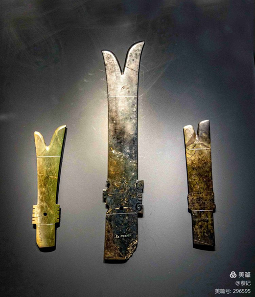 這些玉器表明三星堆文化與黃河中下游仰韶文化(公元前5000~前3000年)和龍山文化(公元前2500~前2000年)、長江下游良渚文化、遼河流域紅山文化(公元前4000~前3000年)的聯(lián)系及交往。