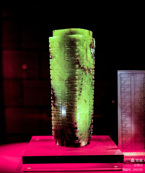 方形筒狀的玉琮是“禮地”法器。玉琮是良渚文化(公元前3300~前2300年)的代表,中國多地均有出土。